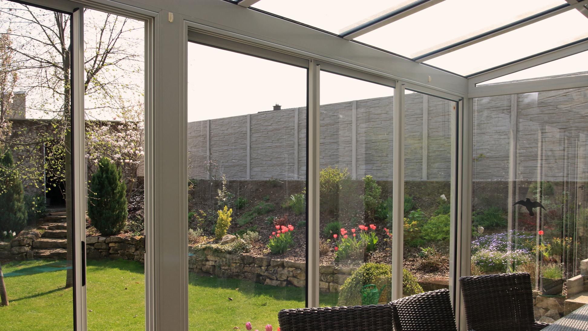 Véranda avec toiture vitrée