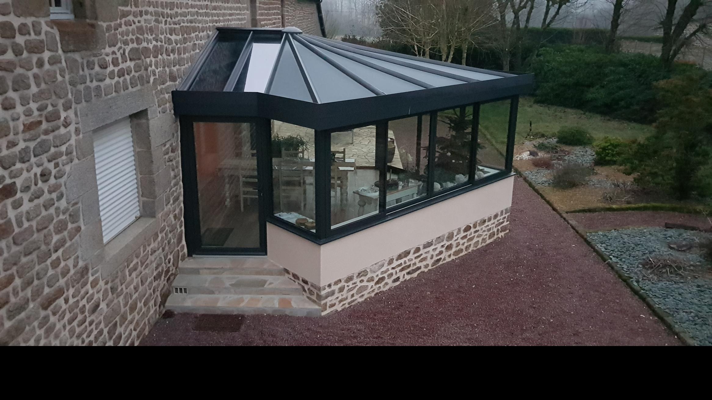 Véranda avec soubassement vitrée